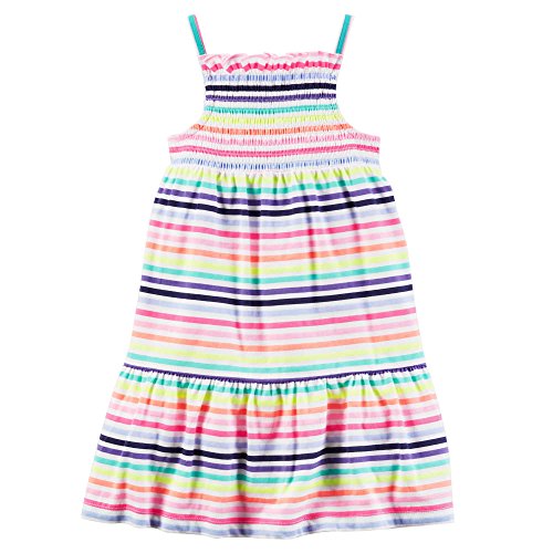 Thin strapped striped smocked sun dress with lower ruffle tier.