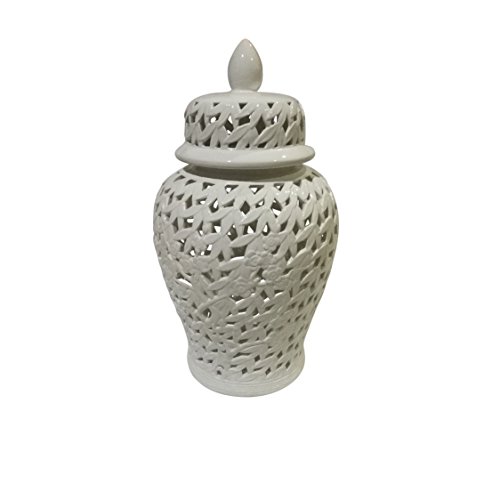 Sagebrook Home Pierced Ceramic Temple Jar, 13.75x13.75x24, White