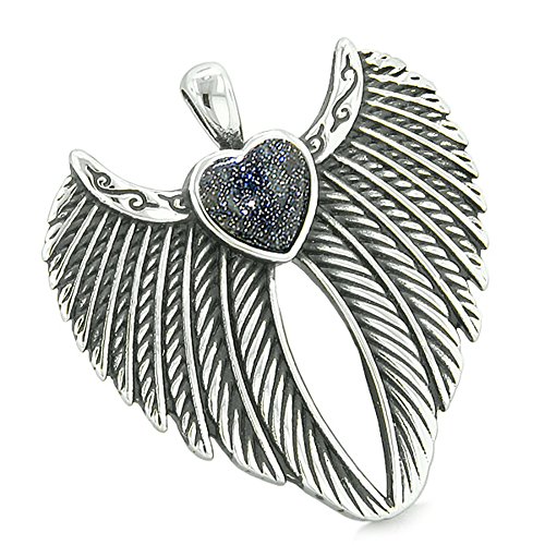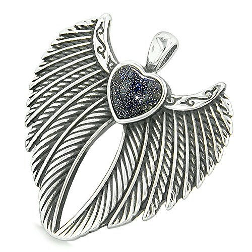 -. Binding : Jewelry -. Brand : BestAmulets -. Color : Blue -. Department : womens -. Feature : Best Amulets® Collection. Very Unique and Special Double Angel Wings and Magic Protection Powers Heart Amulet / Amulet Size: 35mm X 35mm / Amulet is Made from Stainless Steel and holds Cute Heart Shaped Cabochon / Ready to Wear with Very Popular Stainless Steel Link Style 18 Inch Chain Necklace / Comes with Gift Kind Packaging -. Label : BestAmulets -. Manufacturer : BestAmulets -. Model : AMG-HEARTA4 -. MPN : AMG-HEARTA4 -. PartNumber : AMG-HEARTA4 -. ProductGroup : Jewelry -. ProductTypeName : FASHIONNECKLACEBRACELETANKLET -. Publisher : BestAmulets -. Studio : BestAmulets -. Title : Angel Wings Magic Heart Protection Powers Amulet Blue Goldstone Pendant 18 inch Necklace