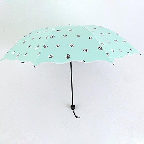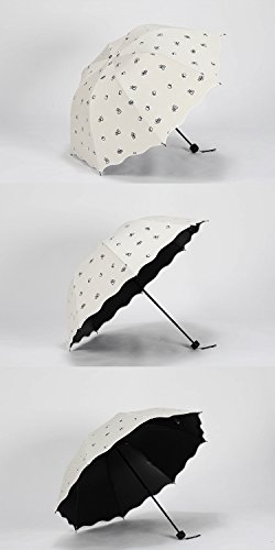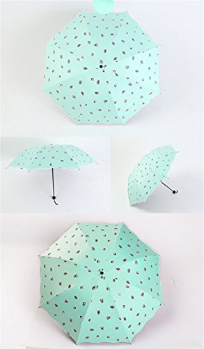 Specifications: * Material: 100% 190T polyester pongee cloth vinyl coating 8 steel ribs * Special Use: Sun Umbrella/Rain Umbrella * Weight: 300g * Fold: 3 * SPF: UPF> 40, AV <5% * Folded Length: 28CM * Open Height: 65cm * Rib: 8pcs * Material: Bone aluminum woven windbreaker bones EVA handle