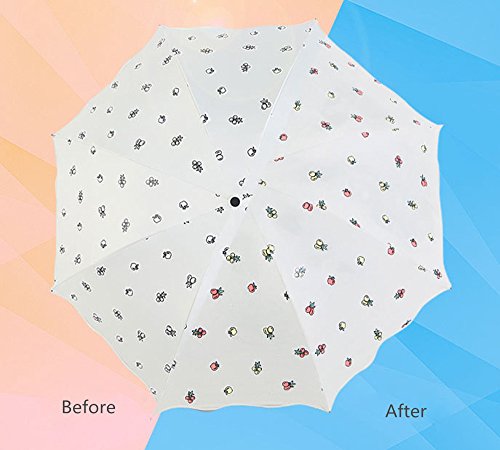 Studio : Ai-life Publisher : Ai-life Binding : Misc. Product Description Features: * Our umbrella was designed and specifically manufactured to withstand heavy rain and wind storms to keep you dry! The worse the weather, the harder it works. * Our fashion three folds umbrella with unique color change design, surface with special Pattern, when meet water the patterns will change to rainbow colors, appear as beautiful fashion colorful images as the picture shows, and will return to white when dry. Believe this adorable umbrella will surely cheer you up in any dismal weather. * It is small and compact which makes it perfect for travel and commuters.