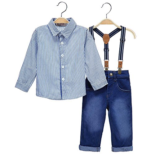 -. Title : niceEshop(TM) 1 Set Kids Boy Outfit Clothing Long Sleeve Striped Shirt & Straps Jeans