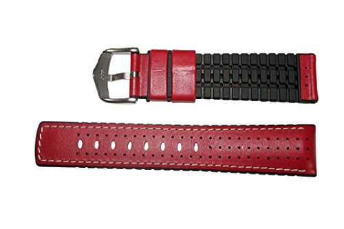 Studio : Hirsch Publisher : Hirsch Binding : Watch Product Description From the Hirsch performance line comes this durable sport-calfleather watchband called Tiger. Made with Hirsch Monza and Hirsch Premium Cautchouc core makes this watchband the right choice for any occasion. Aesthetically pleasing, silky soft, yet highly functional sports bracelet with scratch-resistant upper leather and sportive contract stitching. The perfect companion for every day and sporting wear. In addition, the special geometry and superior grooves at the heart of the cautchouc ensure moisture is wicked away and the skin itself regulates the temperature under the bracelet. The pleasantly soft, stretchy combination of leather and caoutchouc fits the wrist perfectly, even in the toughest conditions, ensuring that it is extremely comfortable to wear. More facts about the Hirsch Performance Line The esthetics and functionality of both materials have now been combined in one bracelet to produce a new, trail-blazing product type from the combination of "leather and caoutchouc" which offers the best of both worlds and opens up a new era in the history of the bracelet. 300M: Hirsch Performance bands ensure a perfect skin-feeling in each wearing situation. Intelligently designed, waterproof lining with a groove structure, humidity and water are quickly released, creating an immediate "dry skin" effect. Long Life: Extended 30 month guarantee (2.5 years) Soft Flexible: Hirsch Performance bracelets are made from a soft and elastic material combination. No Allergy: Great for people with sensitive skin Moisture Vapour System: Integrated moisture and thermo regulation Sauna Tested: Hirsch Performance bands are sauna tested 0