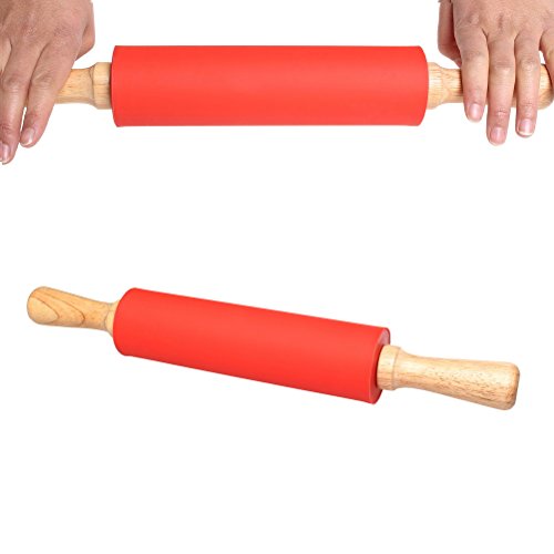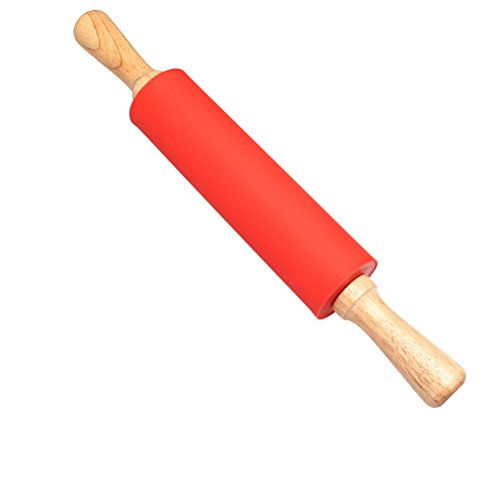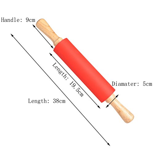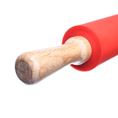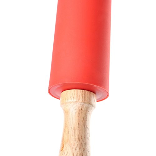 Color Scissor Non-stick Silicone Rolling Pin With Wooden Handle Red