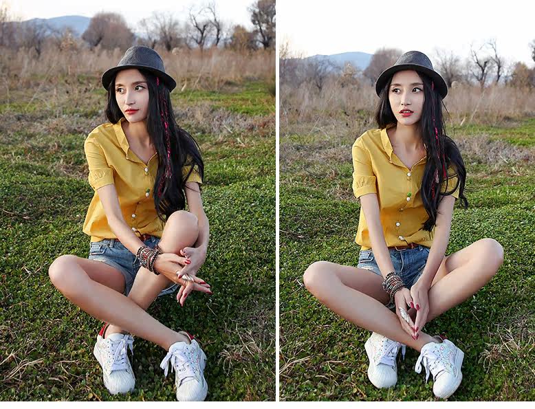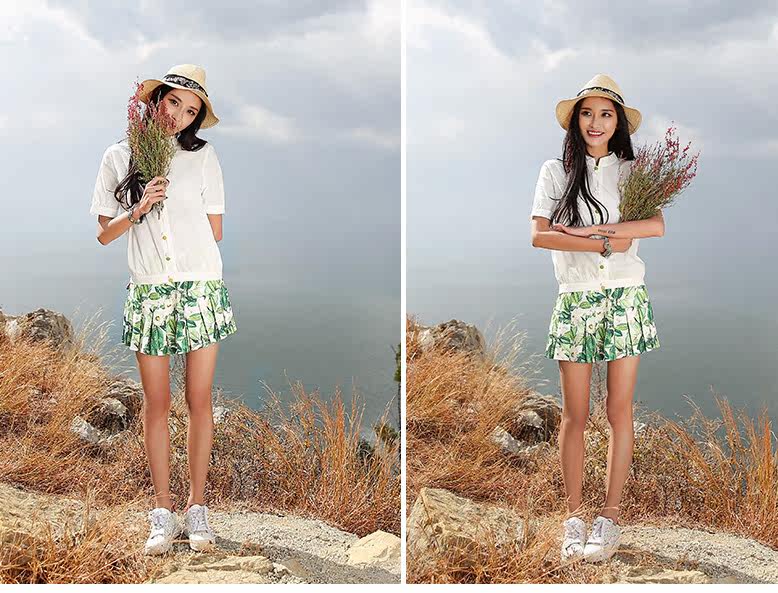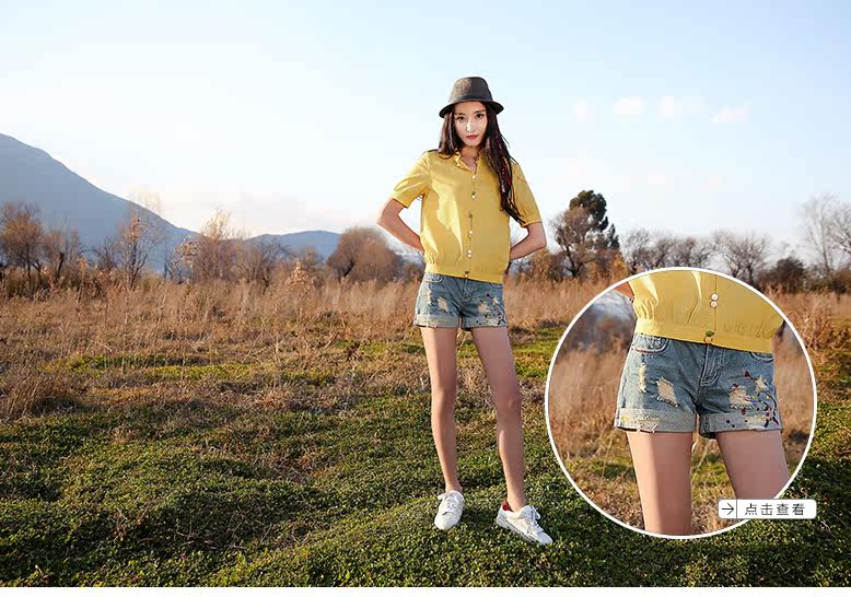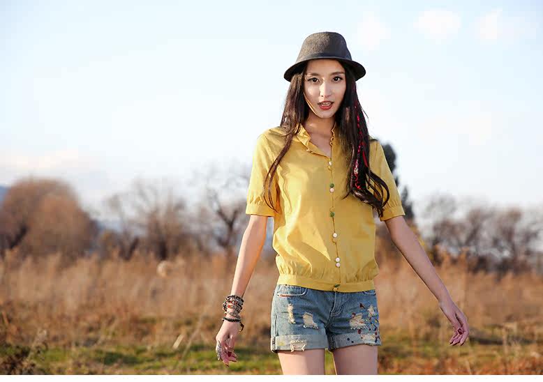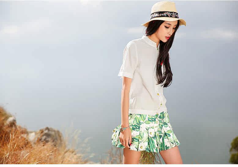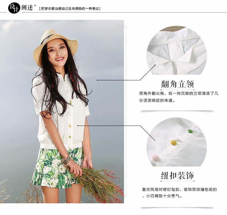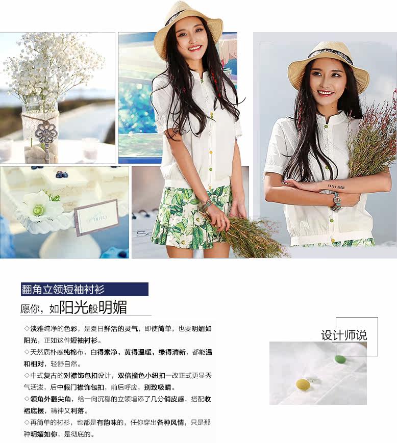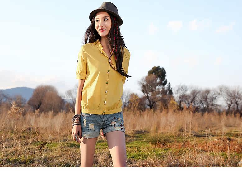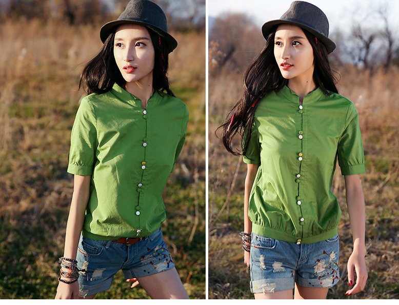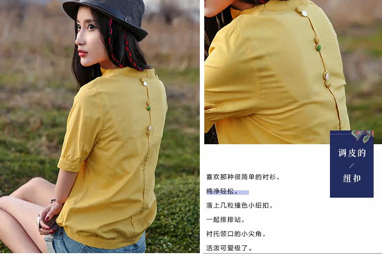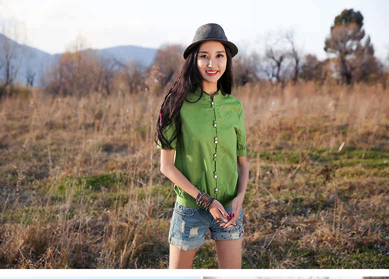 翻角立领短袖衬衫