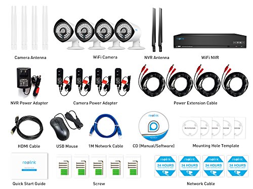4 Channels 1080P Wireless NVR Home Security Camera Monitoring System RLK4-210WB4 includes 1pc of 4CH 1080P wireless NVR, 4pcs of 1080P Wi-Fi bullet IP cameras (RLC-210W), and 1pc of built-in 1TB HDD. This HD Wireless system is the best choice for your home and office network. The cameras and NVR connect with zero configurations (plug and play). Using the system, you can say goodbye to messy cablings, and you can place the cameras conveniently anywhere in the house. It is easily accessible by smartphones, tablets and Windows/Mac PCs, which makes monitoring user-friendly.