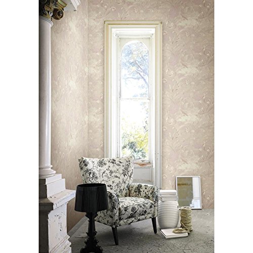 -. Title : York Wallcoverings SH5597 Vintage Luxe Lg Arch Scroll Wallpaper, Cream, Beige, White, Metallic Gold