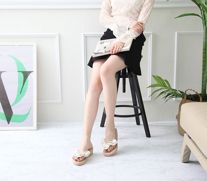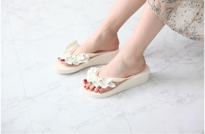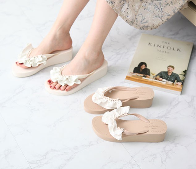 商品名:サンダル レディース トングサンダル フリル 厚底 2018 春 ファッション 靴 婦人靴
