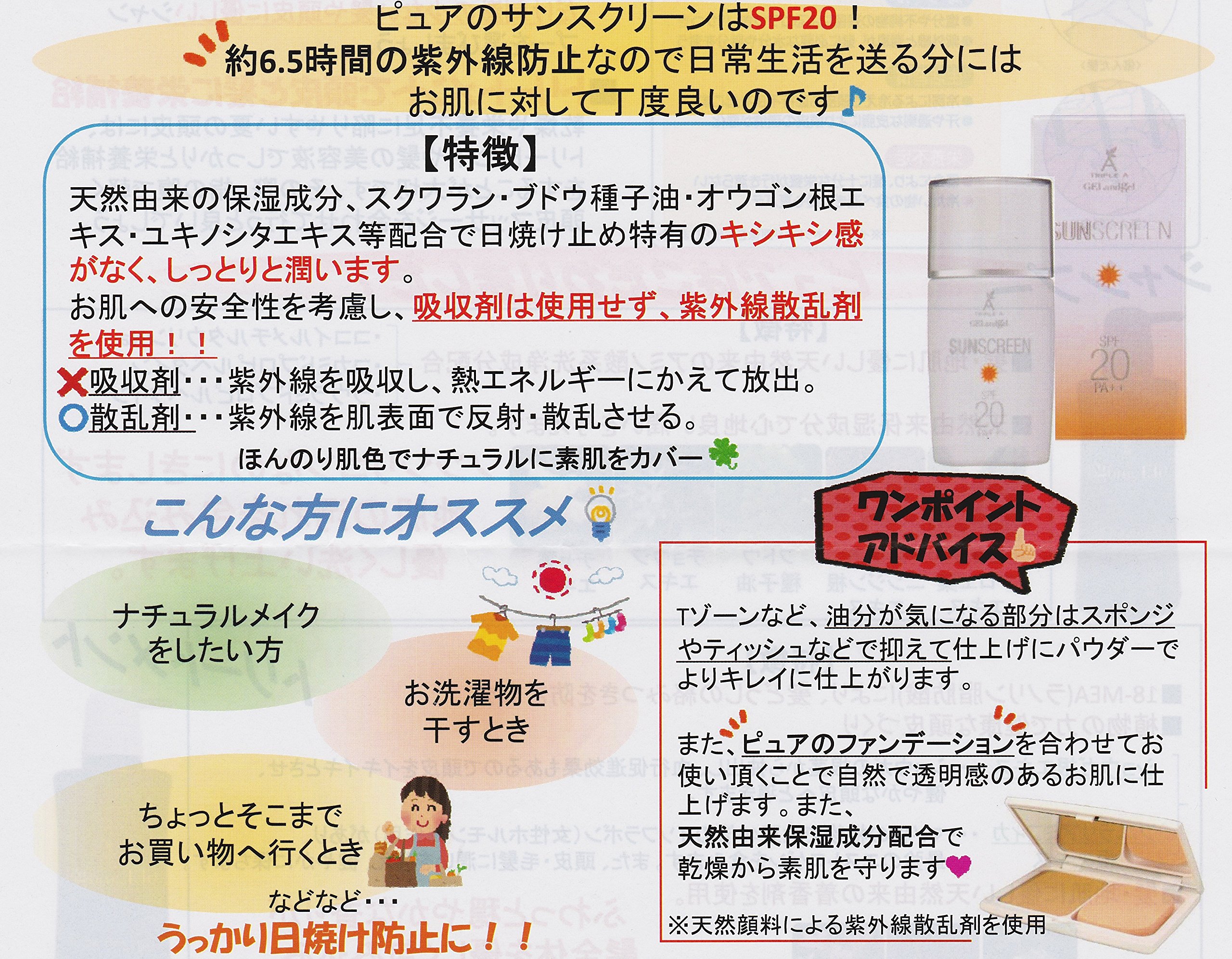 Natural origin material (scattering agent) reflects ultraviolet rays, so there is little burden on your skin.