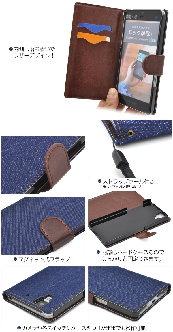 デニムデザインのarrows NX F-01J用スタンドケースポーチ。
