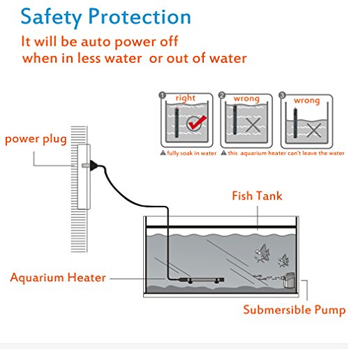 Temperature Range: The temperature of the heater can be adjusted between 61°F~93°F (16°C~34°C), suitable for many kinds of aquariums, fishes and amphibious turtles.