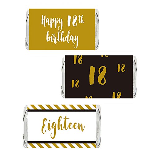 Gold 18th Birthday Miniatures Candy Bar Wrapper Stickers, Boy’s Party Favor Labels, 54 Count