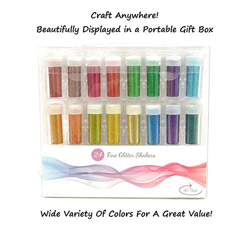 Glitter: Extra Fine, Set Of 24 Vivid Glitters, Shakers, Powder, Great For Arts and Crafts, Makeup, Nails, Body Art, Paint, Kit, Dust, Non Toxic- No Mess, Easy Pour Lids- Crafting, Decorating, Printing