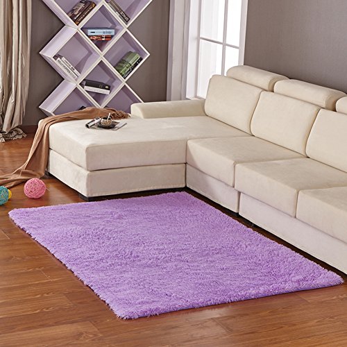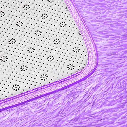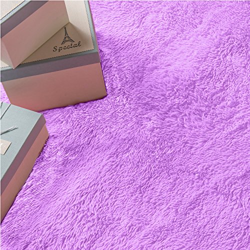 YOH Super Soft Polyester Fiber Area Rugs(3rd Generation) Bedroom Mats Fluffy Shaggy Rugs for Living Room Bedroom Kids Room Nursery Home Decor Carpet Popular Colors 4 Feet by 5.3 Feet,Purple