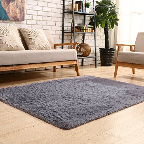 YOH Soft Sofa Area Rugs Girls Room Decor Fluffy Grey Rugs for Bedroom Living Room 4’x 5.3’
