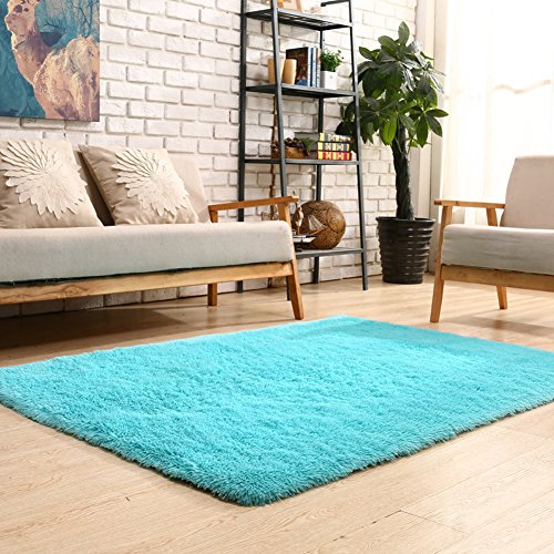 YOH Super Soft Polyester Fiber Area Rugs(3rd Generation) Bedroom Mats Fluffy Shaggy Rugs for Living Room Bedroom Kids Room Nursery Home Decor Carpet Popular Colors 4 Feet by 5.3 Feet,Blue