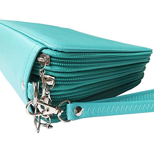 Corasays 160 Slots Handy Deluxe PU Colored Pencil Case, 168 Slots 4 Layer Large Capacity Pencil Wrap Holder (Green)