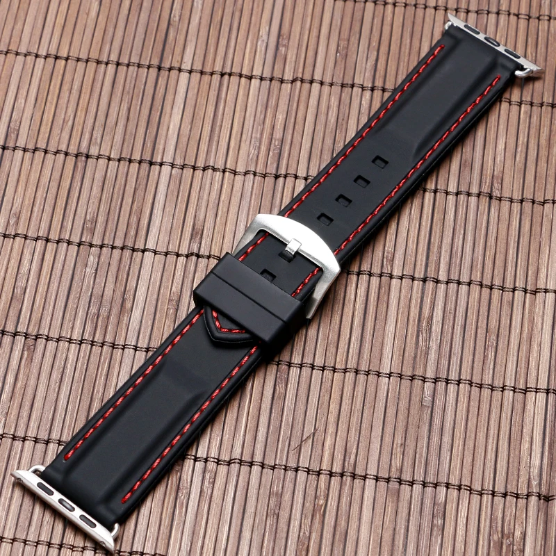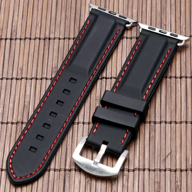 | [해외]38/42 미리메터 고무 화이트/레드 라인 스티치 블랙 실리콘 방수 군사 시계 스트랩 밴드 iwatch apple watch 교체 |