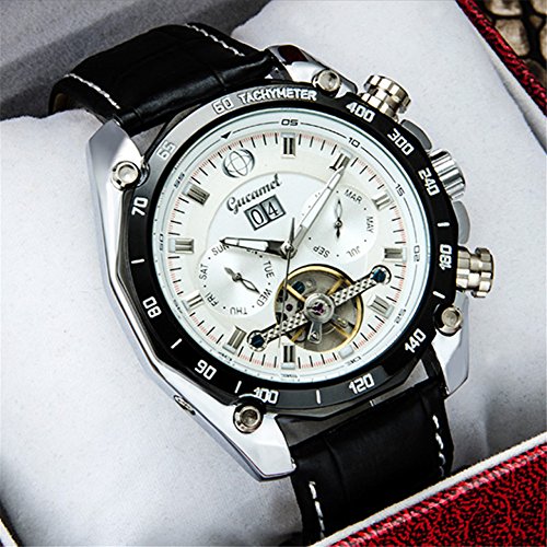 -. Binding : Watch -. Brand : TYF -. Department : Men's -. Feature : Special design self winding tourbillon watch let you be special / Multipurpose can be used as business watch, sport watch or casual watch / Convenient with complete calendar for you to read / Luxury vintage watch with adjustable leather watch band / Together with a luxury gift box, can be a good choice as a luxury gift for father or friends. -. Label : TYF -. Manufacturer : TYF -. Model : men watch -. MPN : TYF-502281 -. PartNumber : TYF-502281 -. ProductGroup : Watch -. ProductTypeName : WATCH -. Publisher : TYF -. Size : Men's Standard -. Studio : TYF -. Title : Men's Watches Luxury Tourbillon Watch Leather Strap Self Winding Mechanical Automatic Wrist Watch