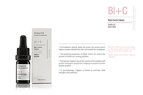 -. Feature : ACNE TREATMENT - Formulated to absorb deep into pores, Bl+C is an active serum for pimple treatment, hormonal acne, and blemishes that corrects and evens out complexion. / ESSENTIAL OILS - Clear skin with purifying black cumin oil, cajeput oil and Vitamin E oil. Bl+C controls breakouts without overdrying, making it the best moisturizer for oily skin. / NATURAL SKIN CARE - Bl+C is gluten-free, GMO-free, Vegan & cruelty-free, paraben-free and 100% pure plant active. Aromatherapy is an added benefit - cajeput is known to promote clear thoughts and liveliness. / CUSTOMIZE TREATMENT - Target the specific needs of your skin. Either mix Bl+C with your daily crme as a preventative pimple treatment or apply directly from bottle to skin for a more intensive, spot treatment. / SATISFACTION GUARANTEE - Once you use Odacite skin care products, you might not be able to imagine using anything else. Achieve clear skin with BL+C skin treatment!