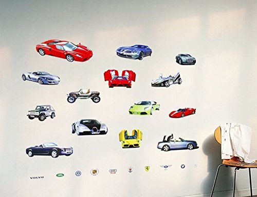 -. Title : Wall Sticker Decal 14 Sports and Luxury Car series Kids Bedroom and Kindergarten Mural Home Decor DIY Plastic Self adhesive Removable