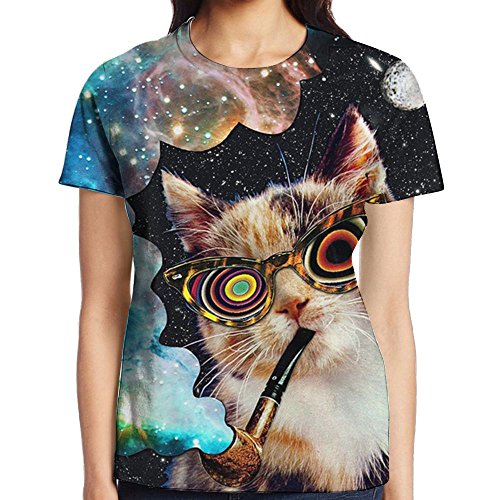 (AAAPlus)/Accessories/Hats/DIRECT FROM USA/Kitty Cat In Space Women's T-Shirt Round Neck Colorful 3D Printed Funny Fashion T Shirt Tee Shirt