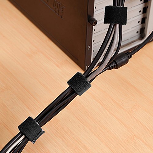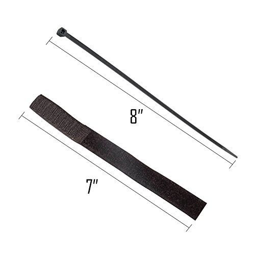REUSABLE HOOK & LOOP TIES: These black fastening ties are approx. 7” in length and 3/4” in width. They are ideal for computer wire organization and electronic cord management