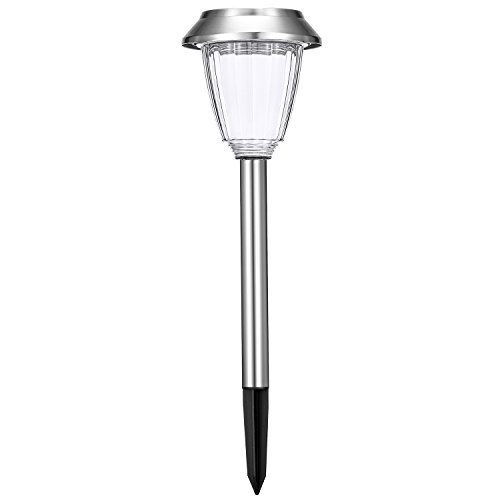 DURABLE CONSTRUCTION: Featured by an anti-rusty stainless steel body and crystal plastic lens, this IP44 Solar Landscape Lights is resistant to the influence of bad weather and corrosion. Besides, it blends well with your garden and path with its classic look.