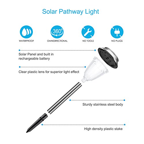 Package Included: 8 x Solar Pathway lights(stainless steel)