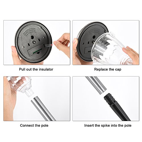EASY INSTALLATION & MAINTENANCE: No wiring is required for the installation of this Solar Garden Lights. Take out the insulator in the battery case, connect the top cap cover, lens, pole and the spike, and insert the it into the ground. Durable housing means that little maintenance is required.