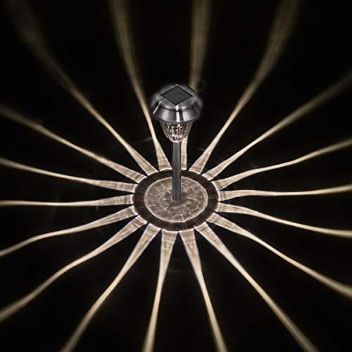 Description: Solar Path Lights to light up your pathway, for visibility and decoration. This elegantly designed solar light is made of beautiful stainless steel, improving its overall looks while also keeping it free of rust. Very stylish when turned on at night, this solar light is suitable for use in garden, lawn, villa, park, or yard at no power cost, no wiring required and simple assembly. Light turns on/off automatically. Improve safety on your property.