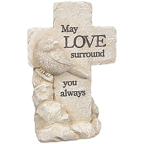 May Love Surround You Always Sandstone Look 4 x 6 Inch Resin Decorative Pedestal Cross