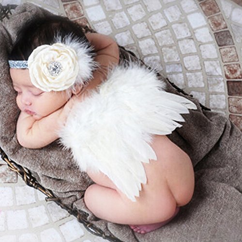 ❤Material:feather + pearl. Wings Size(L*W):5.9*10.2inch Hair band length:7inch.Suitable for 0-6 months baby to wear.
