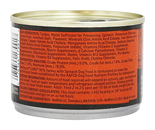 -. Title : Wellness Natural Pet Food CORE Grain-Free 95% Turkey with Spinach Canned Dog Food