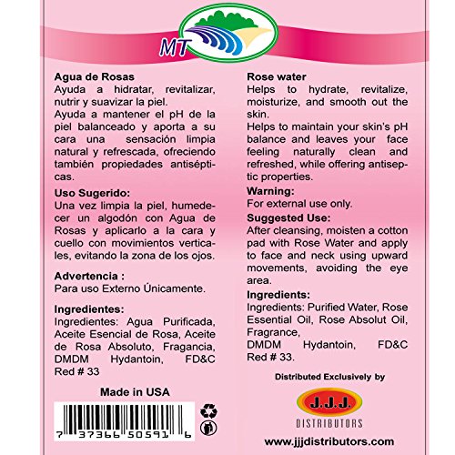 It is great as a skin toner, body splash or added to bath water. Refreshing floral fragrance of fresh picked roses. Es magnífico como un tóner de piel, chapoteo del cuerpo o añadido al agua del baño. Refrescante fragancia floral de rosas frescos recogidos.