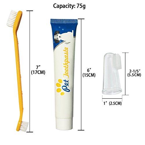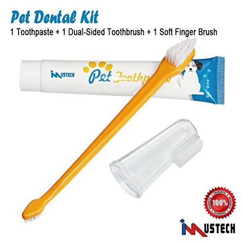 -. Title : iMustech Pet Dental Care Kit, 3 Pcs/Set Pet Toothbrush and Toothpaste, Includes 1 Dual-Sided Pet Brushes, 1 Toothpaste and 1 Finger Brushes, Excellent Toothpaste Set for Dogs, Cats and Most Pets