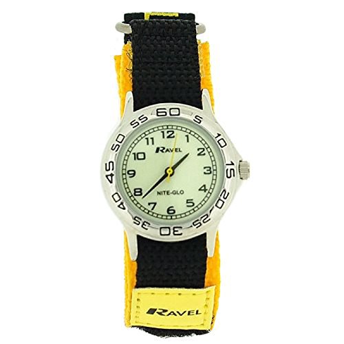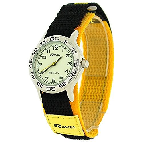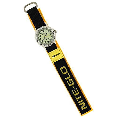 -. Title : Ravel Nite-Glo Quartz Luminous Dial Yellow & Black Velcro Boys Watch R1708.9