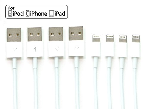 4pcs Pack - USB Data and Charging Short Cable (5 inches long) Compatible with Apple iPhone 5, 5S, 6, 6S, 6 Plus, 6S Plus, 7, 7 Plus, iPad Air, iPad Mini and iPod Touch (White)