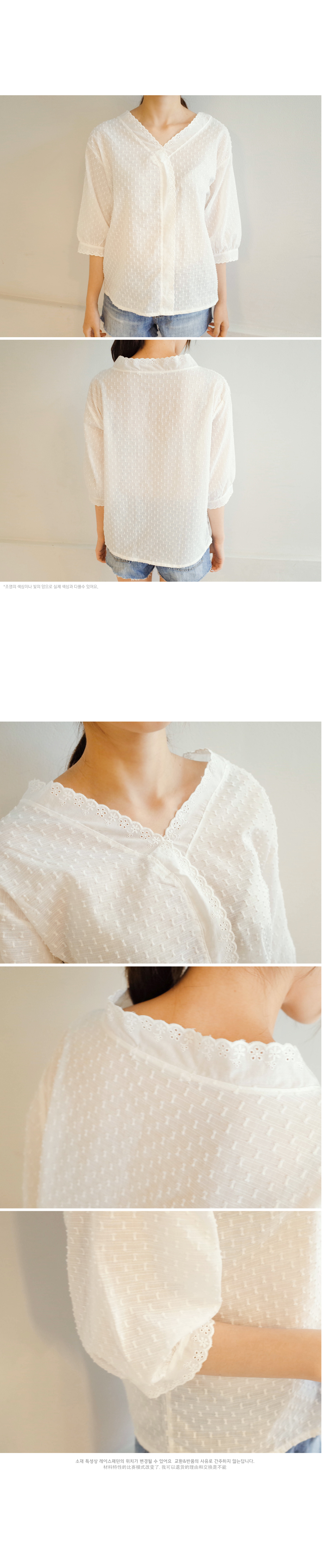 넥라인에서 Y라인으로 떨어지는 물결포인트가 사랑스러운