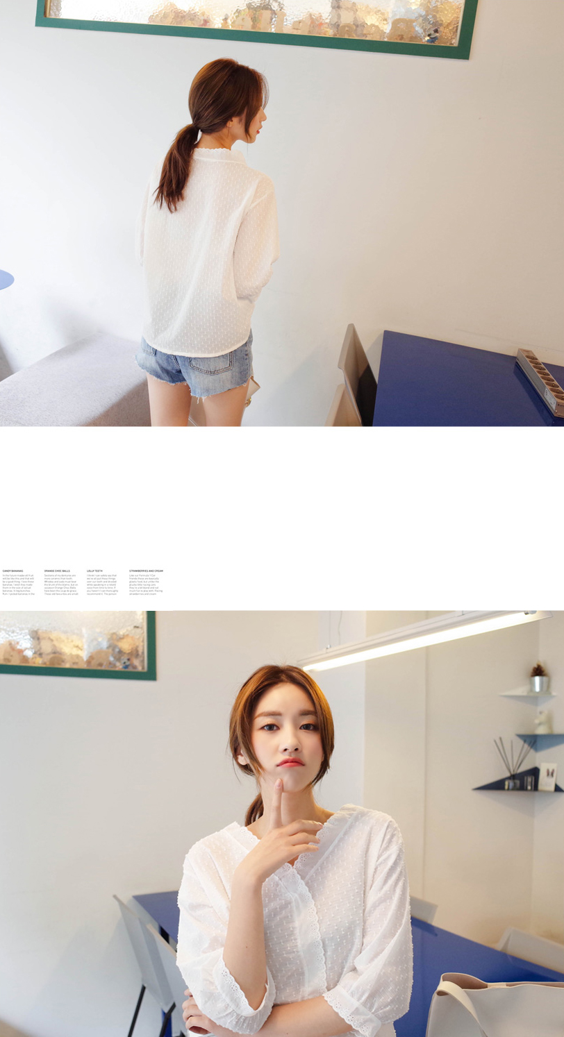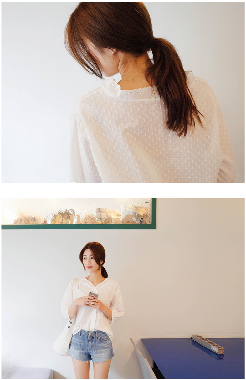 소매라인도 한번더 물결레이스로 포인트를 주어