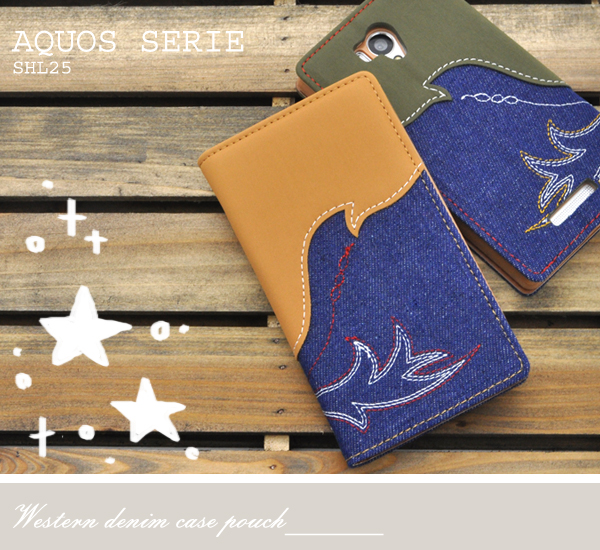 AQUOS SERIE SHL25用ウエスタンデニムケースポーチ