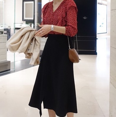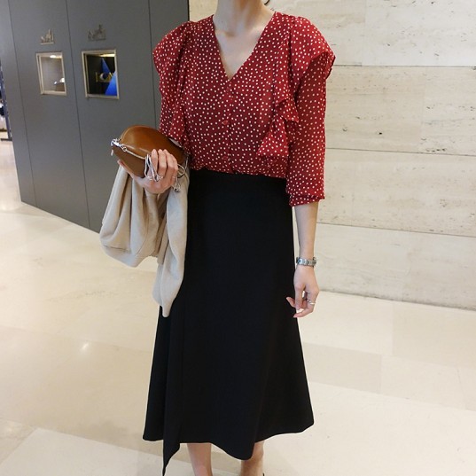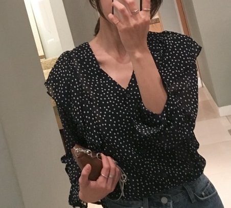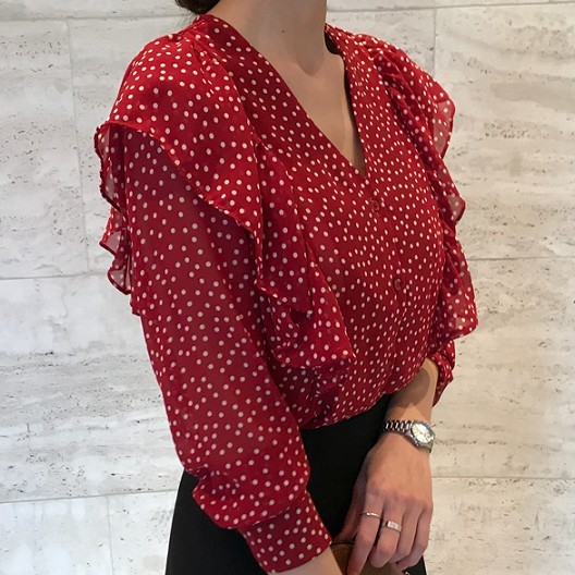 ドット柄がおしゃれなカジュアルブラウス。