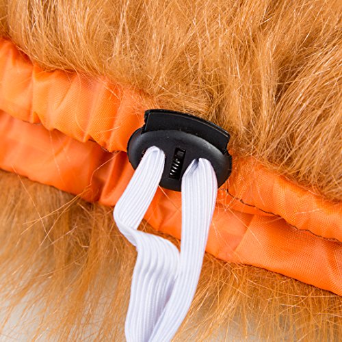 ?Type: Lion Mane for Dog Large Medium with Ears ?Material: faux fur and polyester ?Adjustable elastic band to put it on. ?With ears yes or Not: Yes ?This unique lion wig is perfect for large or medium dogs. ?Size of lion mane wig: Neck girth is 17.2"" to 28.6"" (43.7cm to 72.6cm),15"" long. ?Suitable pet: Medium or Large Dog weighting from 60lbs-160lbs. ?Perfect for Halloween Christmas cosplay parties, holidays or festivals, also can keep warm in winter. ?Your baby will win a lot of admiration when wearing this costume walking on the street.