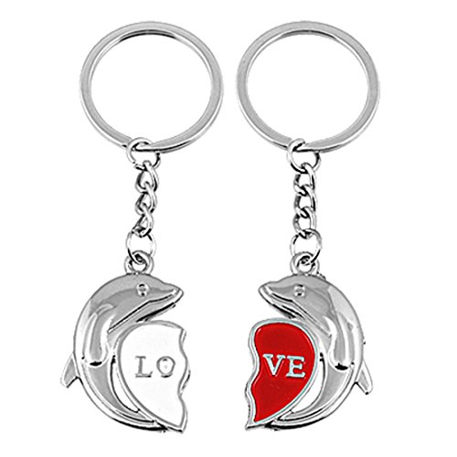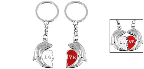 -. Title : 2 Pcs Couple Dolphin Keychain Love Heart Key Chain