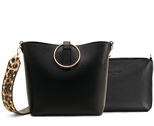 Studio : Western Fashion Publisher : Western Fashion Binding : Apparel Product Description New! Like Dreams Tigra Crossbody Tote w/ Pull-out Pouch- Black Item #: H16101538 ? L 13 * H 10.5 * W 4 Trendy versatile Tote has an edgy thick animal print strap with gold eyelets on the edges that highlight the smooth vegan leather body. Has a ring detail hardware that can be use a handle or left down for an essential detail. The spacious interior has a large pouch that can be detached and used as a crossbody with its own animal print strap. ? Quality Faux vegan leather ? Gold-tone hardware ? Detachable shoulder strap ? Exterior: 1 zipper pocket ? Interior: 1 large pouch inside pouch 2 media wall pocket and 1 zipper wall pocket. Lined with fabric. 0