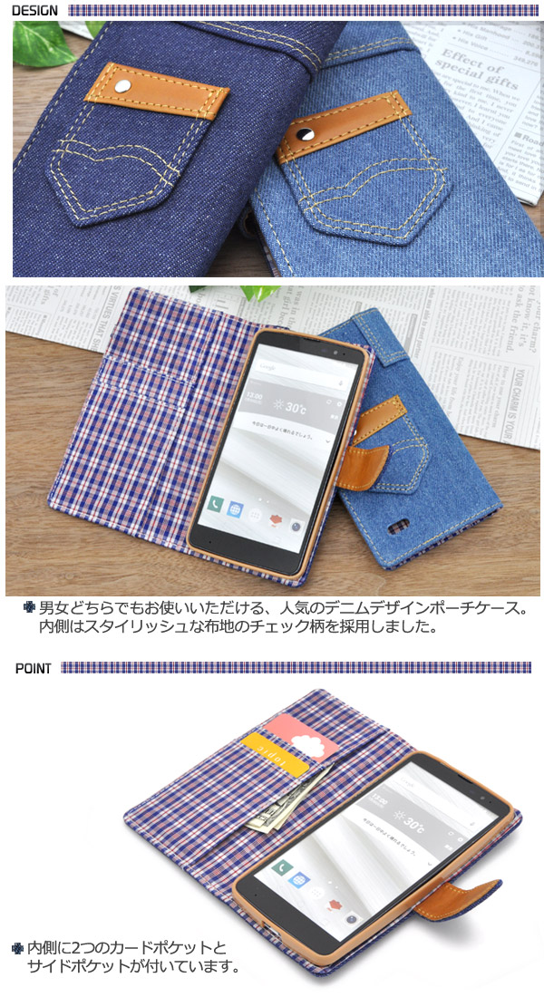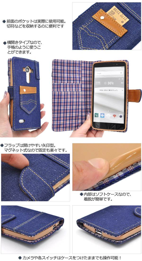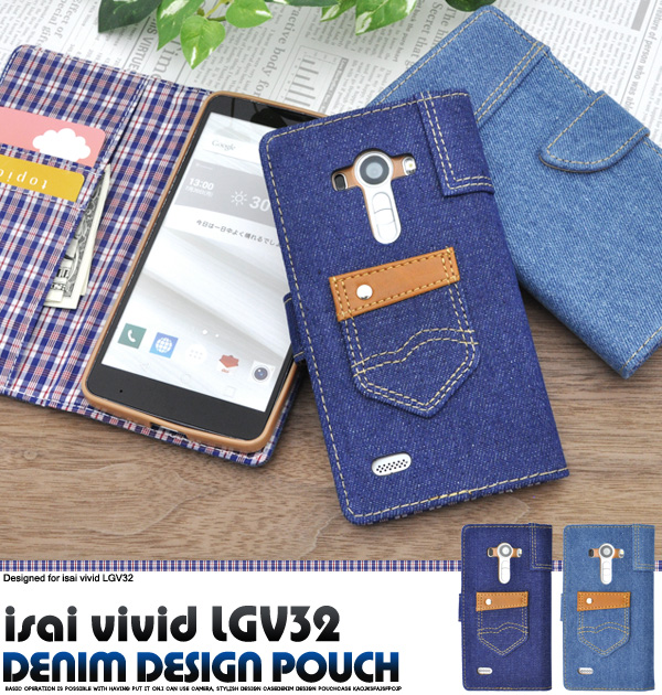 isai vivid LGV32用 デニムデザインケースポーチ(ジーンズデザイン)