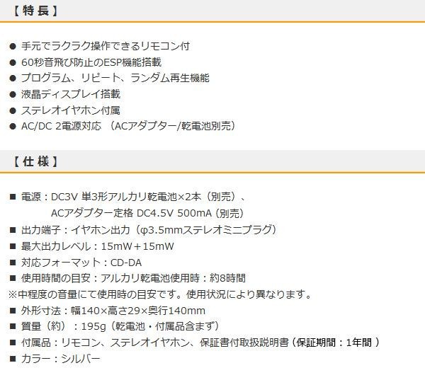 外出先でもCDを持ち出して気軽に聴けるポータブルCDプレーヤーです。 製造国:中国 ※サプライヤー直送品 ご注文後2~3営業日後の出荷となります【商品名】OHM AudioComm ポータブルCDプレーヤー シルバー CDP-380N-S
