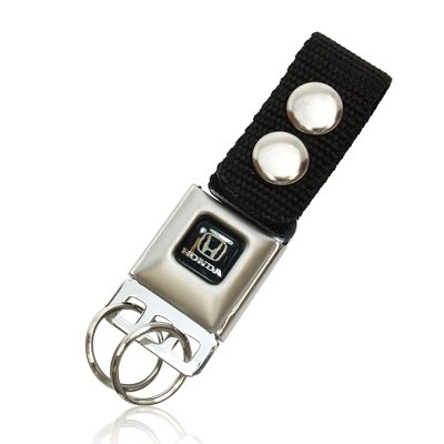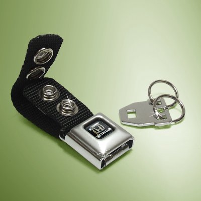 Product Description This keychain conveniently releases your keys with a push of the button. Two snaps on the 1 inch nylon webbing make it easy to attach to your belt, purse, sports bag, etc. This is a very unique item and is sure to catch the attention of everyone around. It is made with a miniature seatbelt buckle clasp and really works! 0