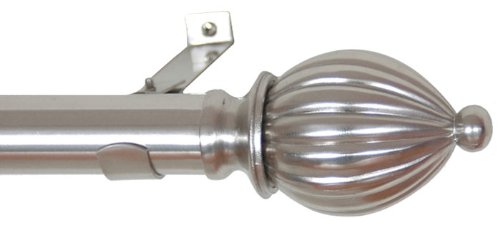 Curtain rod 18-inch by 48-inch Nickel finish. All metal with 1.25-inch pipe and the package incudes rod, finials, 2 brackets and hardware. This decorative rod combine elegant taste, sophisticated style, fine quality and craftsmanship. Rods easily adjust to desired length.
