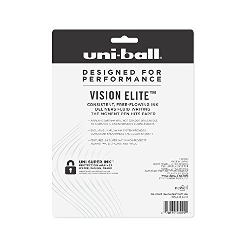 uni-ball Vision Elite Rollerball Pens, Micro Point (0.5mm), Assorted Colors, 8 Count
